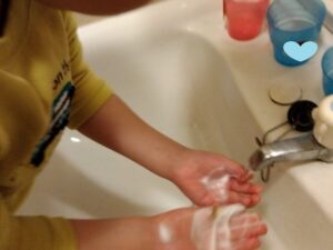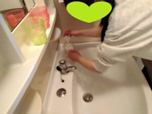 運動の後は 手洗いうがいも忘れません