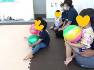 ボールと一緒にピアノの音に合わせて動きましょう♪