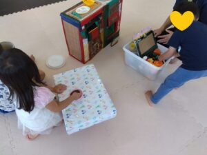 自由遊びではお友達と同じおもちゃで仲良く遊ぶことができました😊
