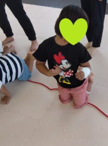 言われた身体の部分を ロープの上で 守ります😊
