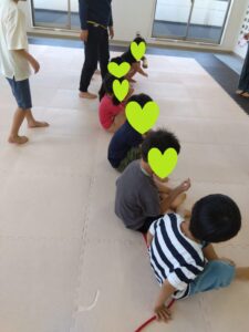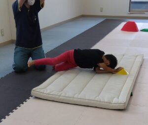 マット運動は 両手をのばして サツマイモさんに変身です🍠