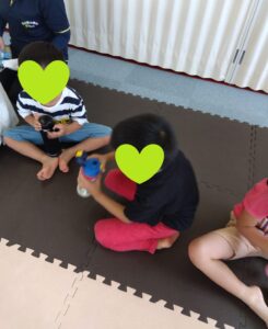 自由あそびでは お友達に「カッコイイね」「それ使いたいなぁ」「いいよ!」