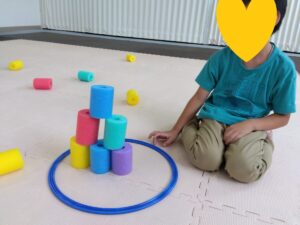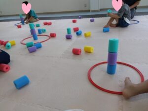 ゴーストップでは音が止まったらプールスティックを積み重ねていきます◎