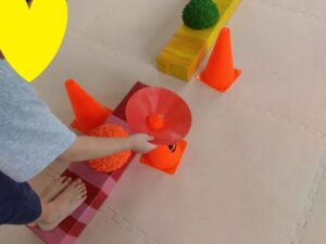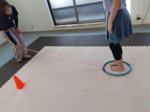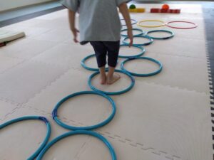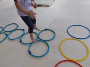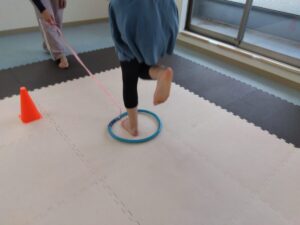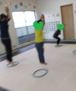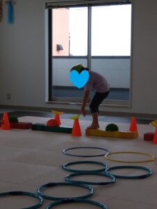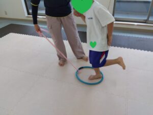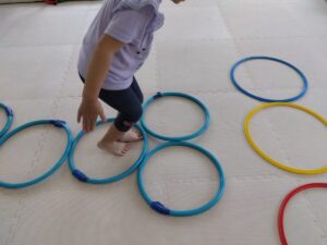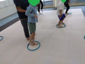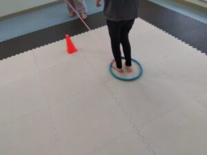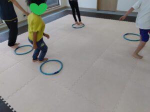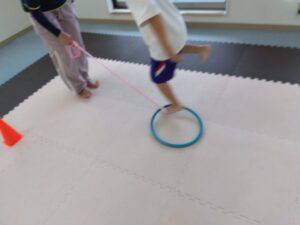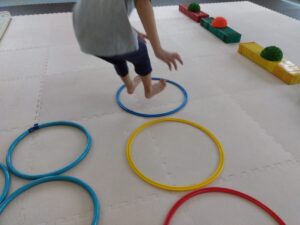 上手にできた後は好きな色のフープに跳んでいきます👣