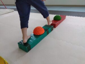 平均台には栗が!!!踏んだら足が痛くなっちゃうので、踏まないように!!