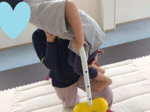 前回りは少し怖い・・と言っていたお友達も先生がお手伝いするよ!とお話しすると「じゃあ頑張ってみる!!!」と怖い気持ちに打ち勝ちくるん♪と回ることができました👏
