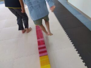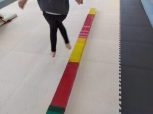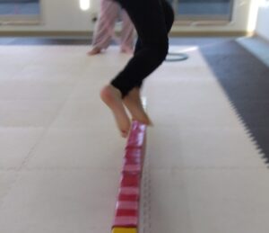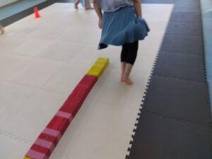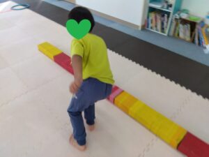 平均台を横ジャンプで飛び越えながら進みます☆彡