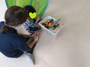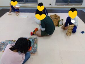 歌をうたいながらピアノを弾いたり、カプラやミニカーでお友達と