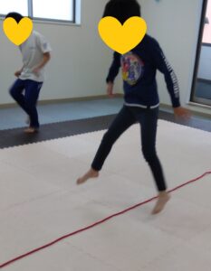 ロープジャンプは横向きや前向き、後ろ向きでジャンプして進みました!
