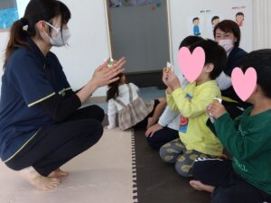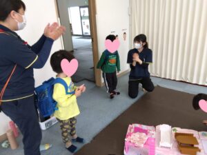 最後にトントントントンアンパンマンの手遊びをしてから帰りのご挨拶をしました♬