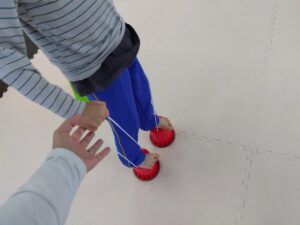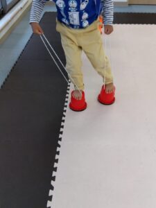 ポックリに乗ってコーンをクルっと周り戻りました♬