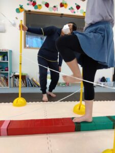 平均台から落ちないようにしながら蜘蛛の巣をくぐって進みます