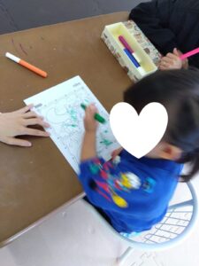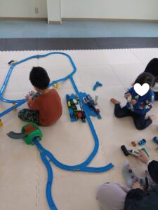 運動あそびの前にお絵描きをしたり、お友達とプラレールで遊びました😊