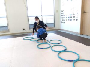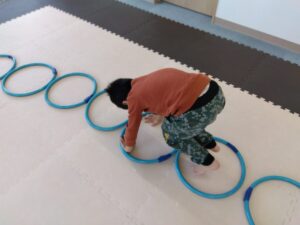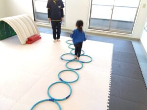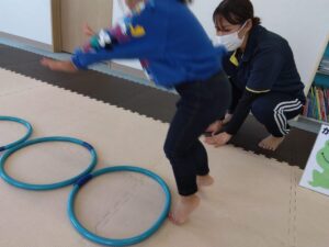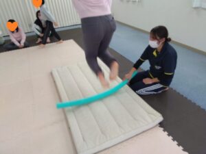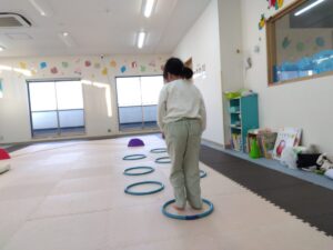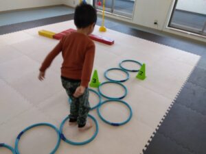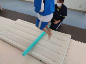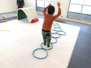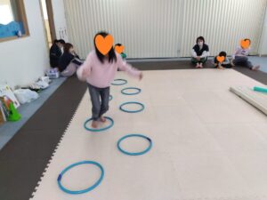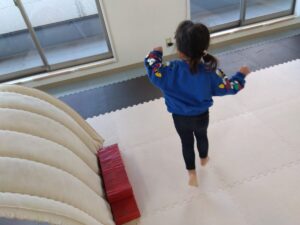 膝を曲げて1個ずつしっかり止まりと転ばないでジャンプしやすいですね