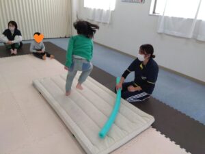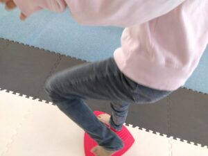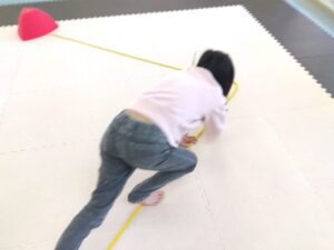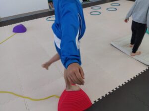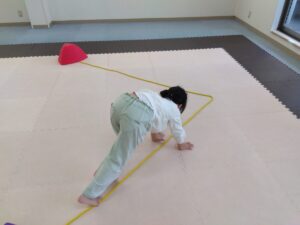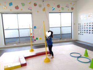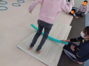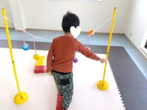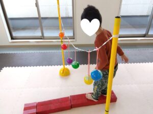 平均台を渡りながら本日着てきた洋服と同じ色のボールをタッチします✋