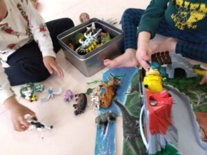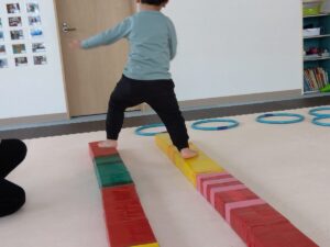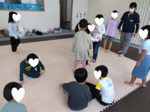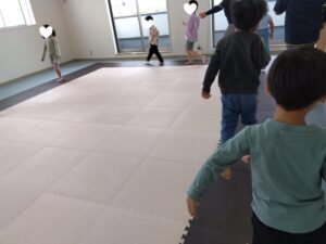 音にあわせて動き音が止まったら動物の名前を聞きましょう!