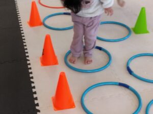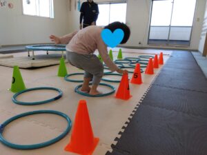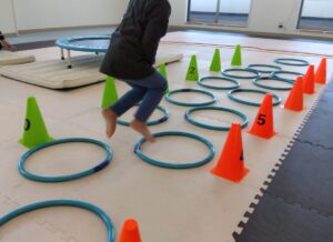 ジグザグジャンプ!!目印のコーンをタッチしながら進んで行きます!!