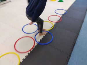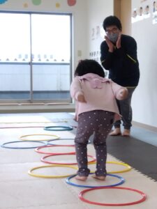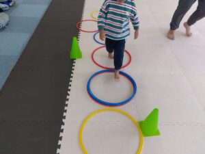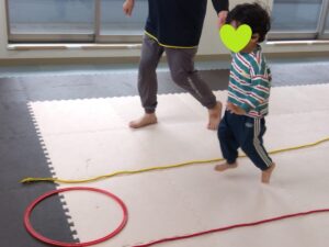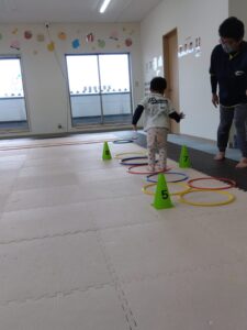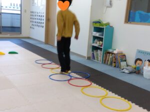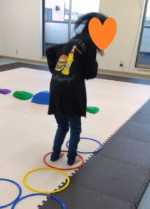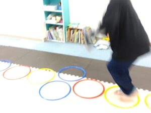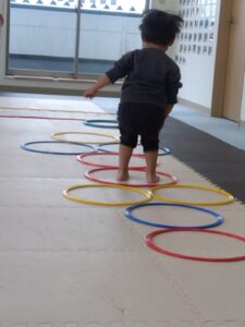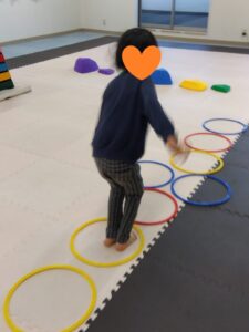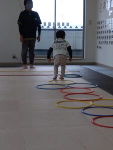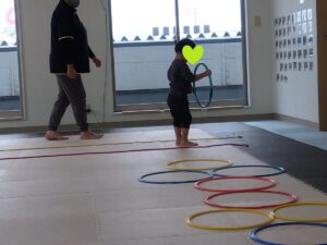2回目は難易度上がり、赤いフープに来た時1つ下がって赤いフープを飛ばしてジャンプ!