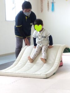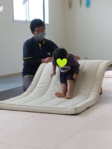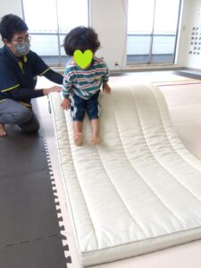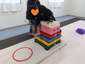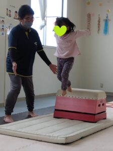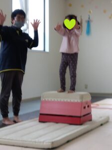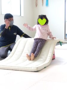 とび箱をすべり台に変身させて、するり~と滑りました😁