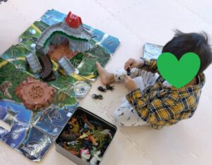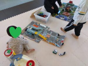 「おはよう」っと元気に来てくれたお友達☆彡仲良くミニカーや恐竜で遊んだり、製作したり、「何見てるの?」「いれて」っと言いながら 一緒に働く車の本を見たりして過ごしました