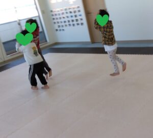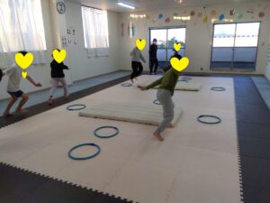 皆の大好きな鬼ごっこ👹ルールは、マット、フープ、茶色いマットの上のみが通り道です☆彡