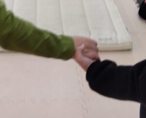 急いで片づけをしていると…「あれ?!なんでこれはしまわないのかな?」っとフープが1つ出したままになっていることに気が付き…水分補給したら また静かに座って待っていてくれました💮