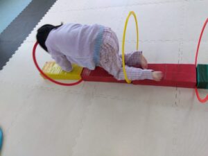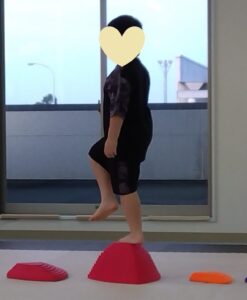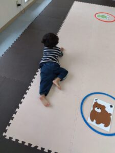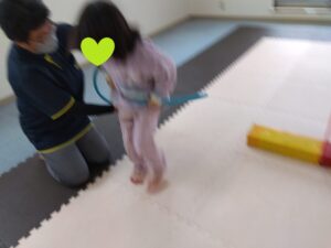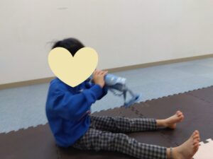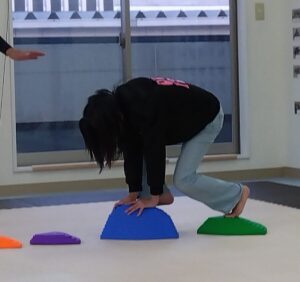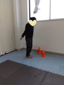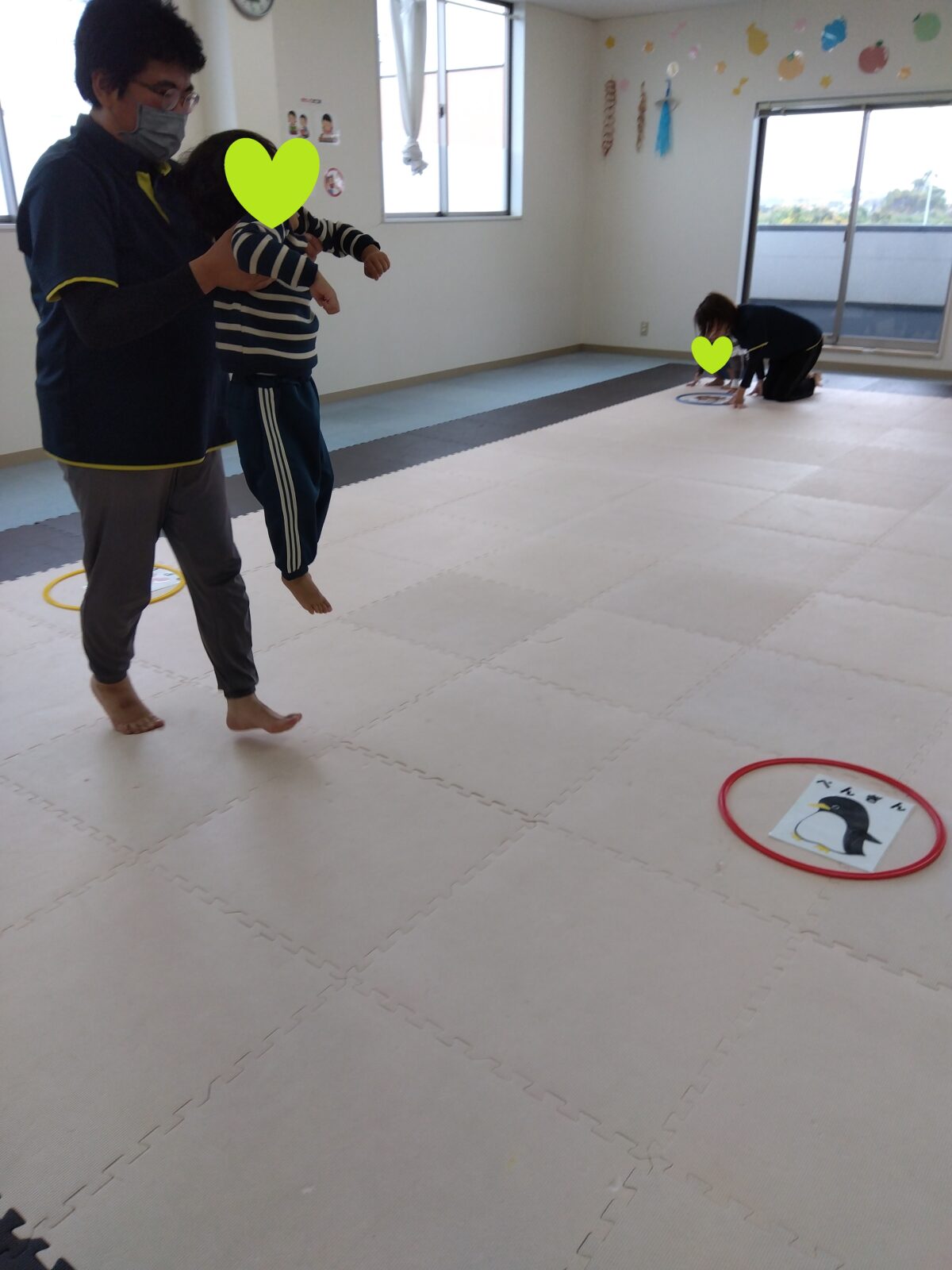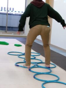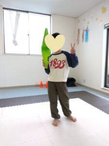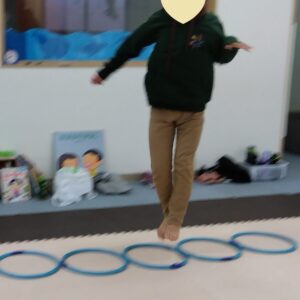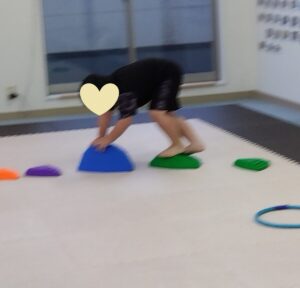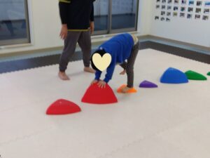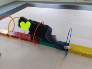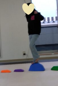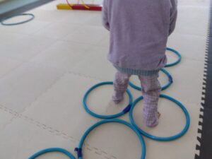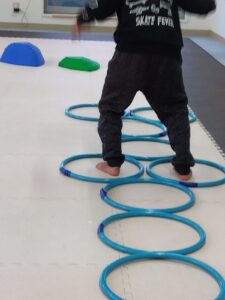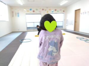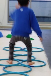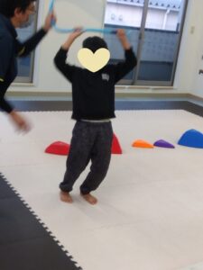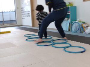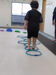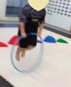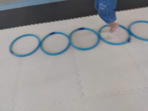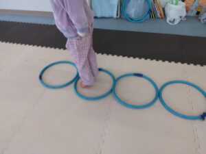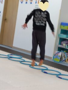 今度は、フープの印につま先を向けてジャンプ😆