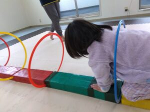 並べてフープをグーパージャンプで進みます。