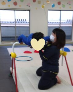 鉄棒は、怖い時もあるけれど先生のサポートで頑張ります😁