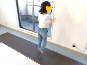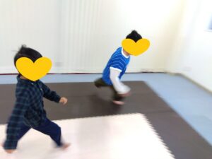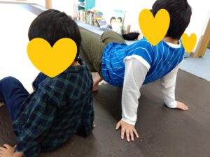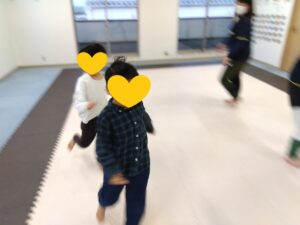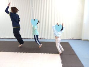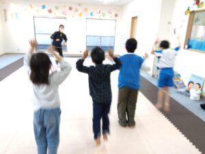 音が鳴っている時は動物さんに変身したり、走ったり大忙し!!音が止まるとスティック重ね!!