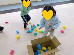 今日はお友達のリクエストにおこたえして「スティック重ね」と「コロコロドッチボール」をやりました!!!