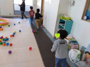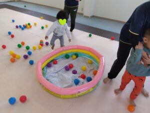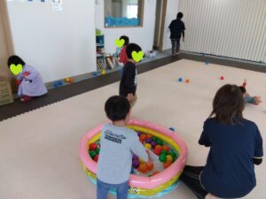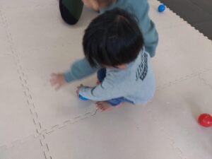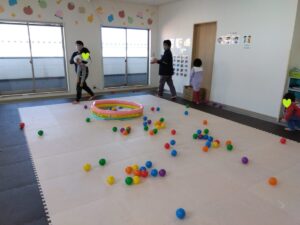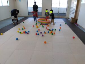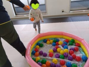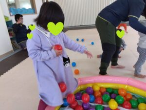 みんなそれぞれに自分のボールの色を決めて、散らばったボールの自分の色だけを見つけます👀