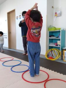 大きいフープの時はポーズを取ります。