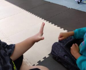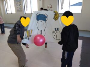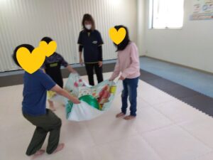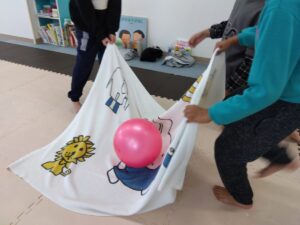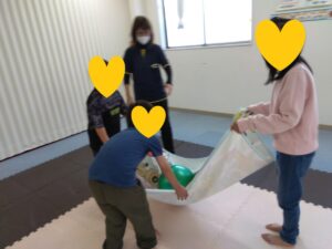 最初はグーパーで組み分けをしての、タオルを使ってボールジャンプ✨