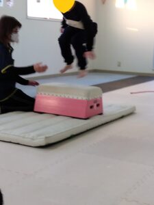 1段のとび箱に、両足でジャンプして乗ります🤸♂️