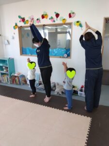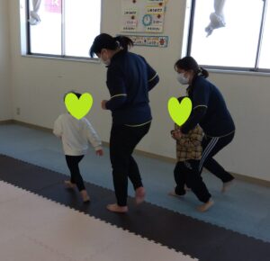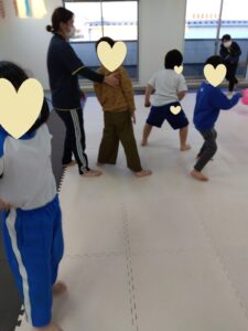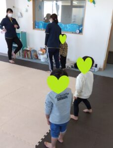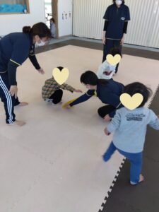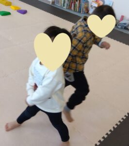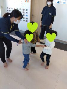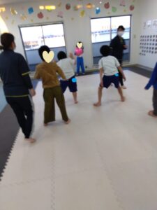 今日の2人組は手は繋ぎません💦2人組になって追いかけっこしながら、前のお友達にぶつからない様に!!!チャレンジしましょう