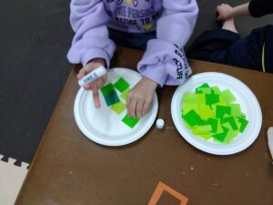「何個かな?」「何色かな?」よ~く見て探したら、トレーやタオルにのせて