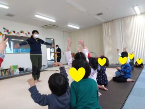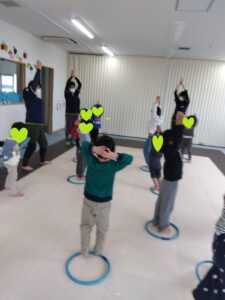 フープの中で、エントツ・フラミンゴ・トンボなどいろんなポーズをしました♪