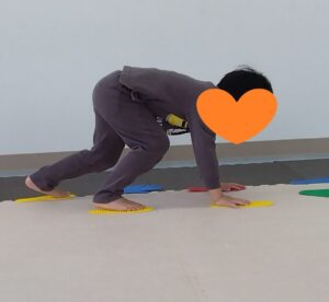 クマさんの時は、顔を上に上げたり、手をパーの形にして進んで行こう!
