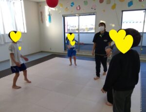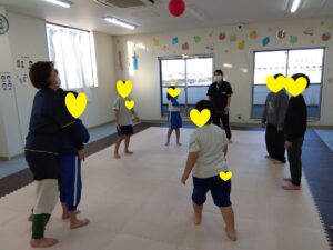 みんなで輪になって、風船を落とさない様にパスしましょう👐