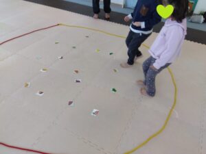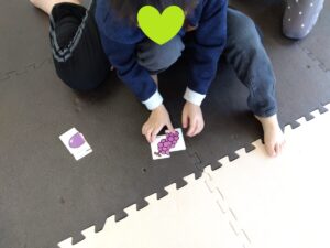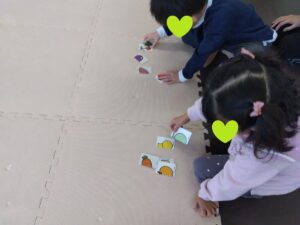 自分に配られた半分のカードを見て、円の中から対のカードを探します👀