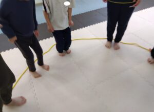 言われたらロープの外にジャンプします。1回ジャンプしたらその場で