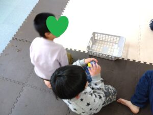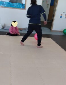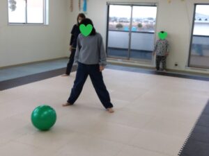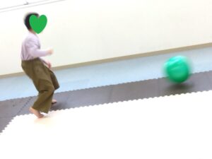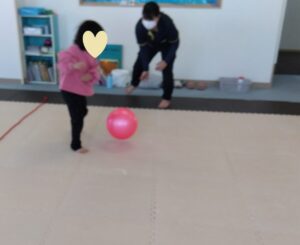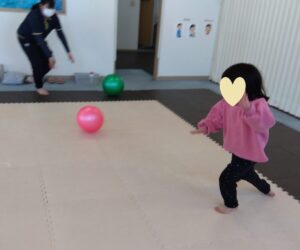 お友達の提案で以前やって楽しかった「またやりたい!!!」っと張り切って、コロコロ転がってくるボールをよーく見て 逃げて 投げて 楽しむことが出来ました🥎