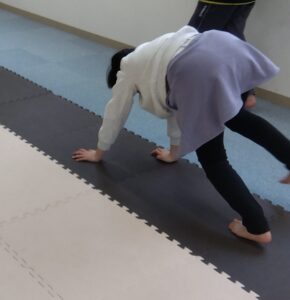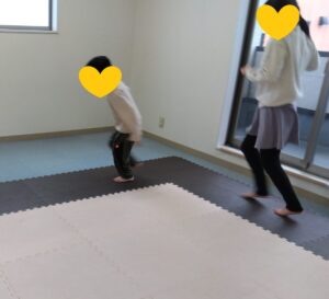 両手は仲良しさんでパーの手でついて、自分でタイミングを測って、ジャンプです!