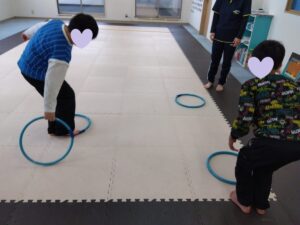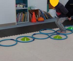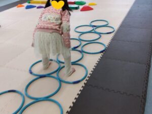 自分がジャンプしやすい場所にフープを置きましょう!