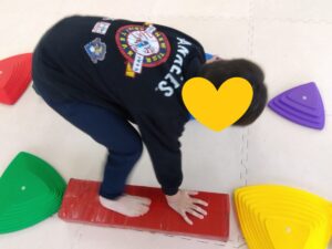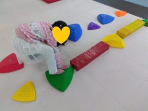 デコボコ道はクマさんになって前向きやお友達のお顔を見ながら横渡りしましょう😄