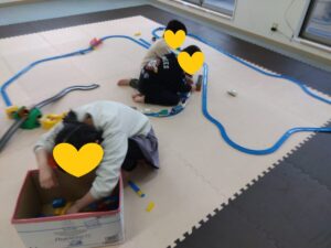 電車やブロックなどのおもちゃで遊んだり…今日は何を作ろうかな?!と 空き箱やトイレットペーパーの芯などを使って