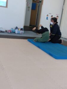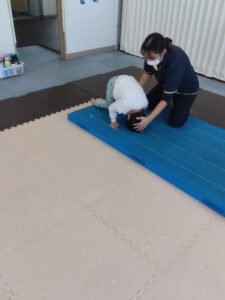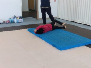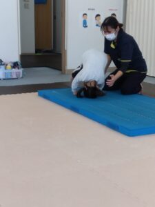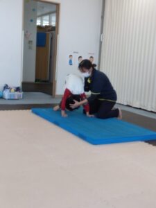 前転も手はパーの形👐でマットについて回ります