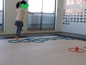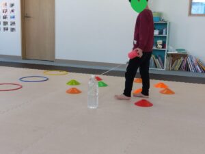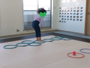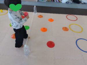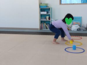 同じ色のフープに荷物を配達していきます💨