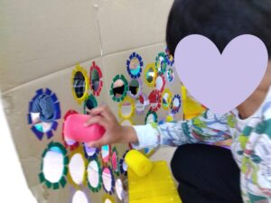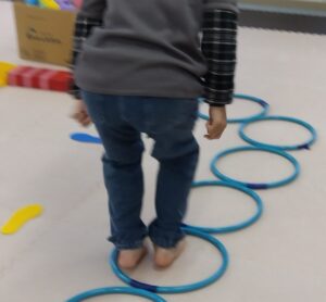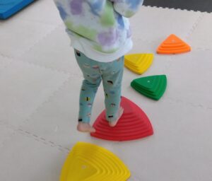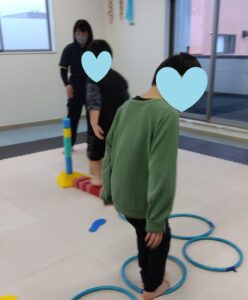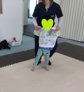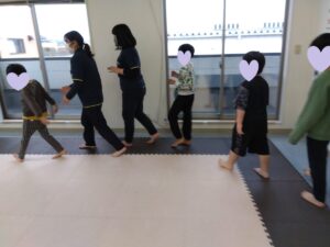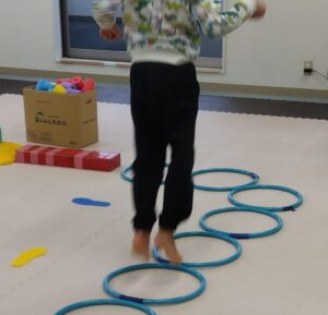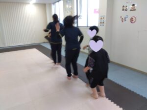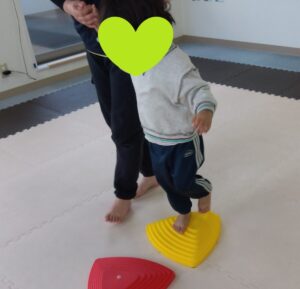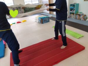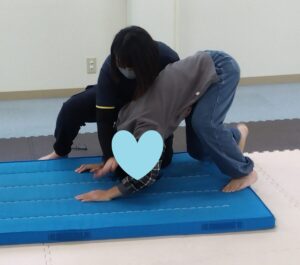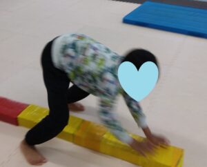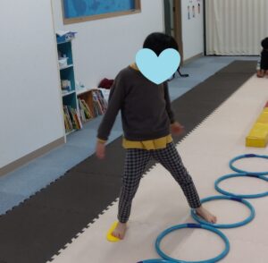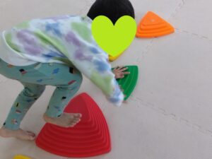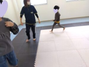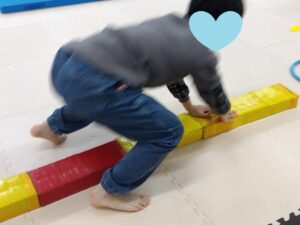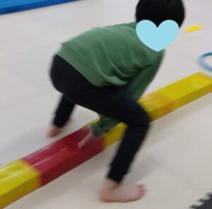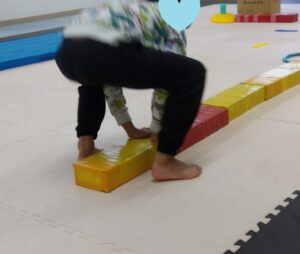 足型👣があるところは、足を伸ばして足でタッチしていきます
